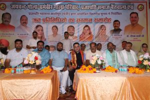 कार्यक्रम की अध्यक्षता कर रहे महापौर दीपक बाली ने कहा कि उत्तराखंड में युवा हृदय सम्राट और प्रदेश के विकास की दूरदर्शी सोच रखने वाले युवा मुख्यमंत्री पुष्कर सिंह धामी की सरकार है। इसमें समस्याओं को लटकाया नहीं जाता बल्कि उनका समाधान किया जाता है। धामी सरकार पूरी तरह से जनता के प्रति समर्पित है और खुद मुख्यमंत्री चाहते हैं कि जनता की समस्याएं तेजी से उनके सामने आए और उनका समाधान हो। उन्होंने कहा कि काशीपुर क्षेत्र के विकास के लिए मुख्यमंत्री जी ने अपना पूरा आशीर्वाद बना रखा है। उनसे जनता के हित में जो भी मांगा जा रहा है उसमें उनकी तरफ से कहीं कोई कोताही नहीं होती। उन्हीं के आशीर्वाद के चलते बन रही करीब 2000 करोड रुपए की विकास योजनाएं जब धरातल पर आएंगी तो काशीपुर ही नहीं उसके आसपास का जुड़ा हुआ क्षेत्र भी विकास के मामले में बदला हुआ नजर आएगा। उन्होंने अभी तक स्वीकृत हो चुकी विकास योजनाओं के बारे में भी विस्तार से बताया और कहा कि देहरादून के बाद काशीपुर में ऐसा दूसरा श्मशान घाट बनने जा रहा है जहां मृत्यु के पश्चात हमारे गोवंश का भी अंतिम संस्कार किया जाएगा। जब श्री बाली ने मुख्यमंत्री द्वारा दी गई विकास योजनाओं से उपस्थित जनमानस को अवगत कराया तो तालियों की गड़गड़ाहट से पूरा पंडाल गूंज उठा। महापौर ने कहा कि जसपुर क्षेत्र भी उनका अपना है और इस क्षेत्र में भी यदि विकास के मामले में उनकी कहीं जरूरत पड़ेगी तो वह हमेशा साथ खड़े नजर आएंगे। इस कार्यक्रम के आयोजन में मां लक्ष्मी सीड्स और राइस मिल, मां भगवती राइस इंडस्टरीज, जय मां दुर्गा राइस मिल परिवार तथा प्रजापति महासभा काशीपुर का विशेष योगदान रहा। इस अवसर पर प्रजापति महासभा काशीपुर के अध्यक्ष राजेश गोला, काशीपुर नगर पालिका के पूर्व वाइस चेयरमैन कैलाश प्रजापति एडवोकेट , जयचंद गोला , धर्मवीर गोला , डॉक्टर यूनुस चौधरी अशोक खन्ना मोहित गोला मृदुल गोला, ऋतिक गोला अनिकेत गोला मयंक गोला पार्षद गुंजन प्रजापति, पूर्व पार्षद देव प्रजापति, पार्षद रवि प्रजापति एवं निर्विरोध पार्षद चुने गए शिवांश गोले, मुकेश चावला, शन्नी प्रधान, चौधरी समरपाल सिंह, जसवीर सिंह सैनी, समेत जसपुर व काशीपुर क्षेत्र के सैकड़ो गणमान्य लोग मौजूद रहे और सभी ने इस शानदार कार्यक्रम की प्रशंसा करते हुए आयोजकों का आभार व्यक्त किया।